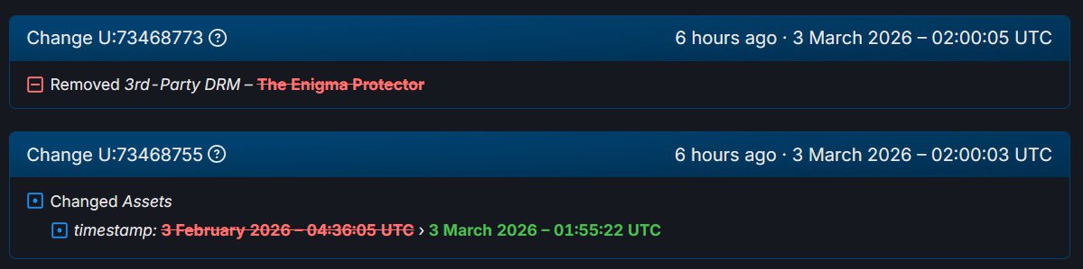 Enigma заменила антипиратскую систему Denuvo, использовавшуюся для защиты ремейка Resident Evil 4 с самого релиза. Denuvo убрали из Resident Evil 4 в начале февраля — видимо, у разработчиков закончилась лицензия.