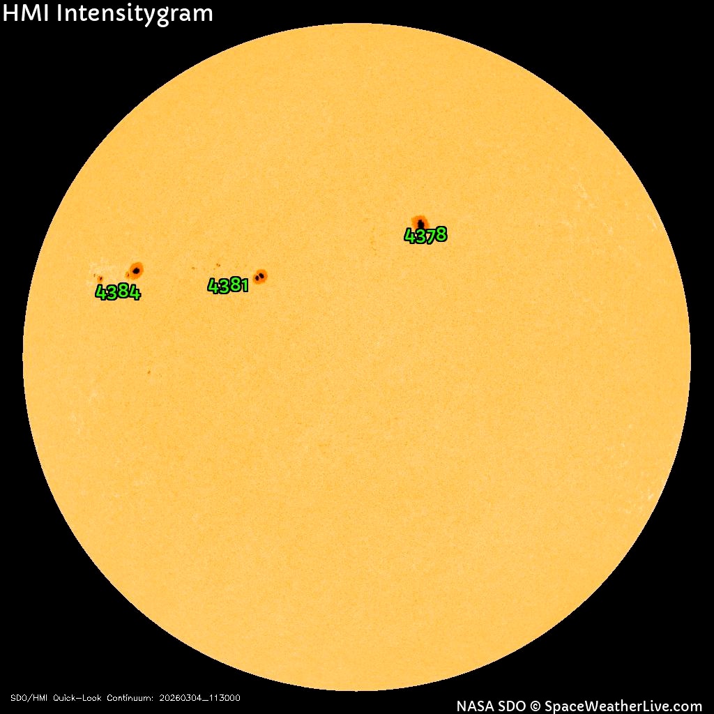Из хороших новостей отметим снижение количества пятен на видимой части Солнца. Несколько пятен распалось, осталось всего три: AR4384, AR4381 и AR4378. Все эти пятна обладают стабильными магнитными полями.