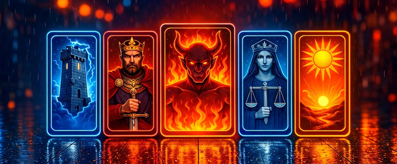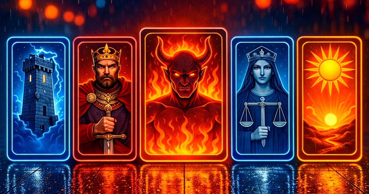 Первая карта — «Двойка Кубков» (перевернутая). Перевернутая «Двойка Кубков» в первую очередь про отношения, и не обязательно романтические. Знаете это ощущение, когда сидите с близким человеком за одним столом, а разговор не клеится? Вроде бы все как обычно, но между вами повисло что-то невысказанное, и оба делают вид, что этого нет. Карта не говорит, что все рухнет. Она говорит: хватит притворяться, что все в порядке, потому что от этого притворства становится только хуже.
