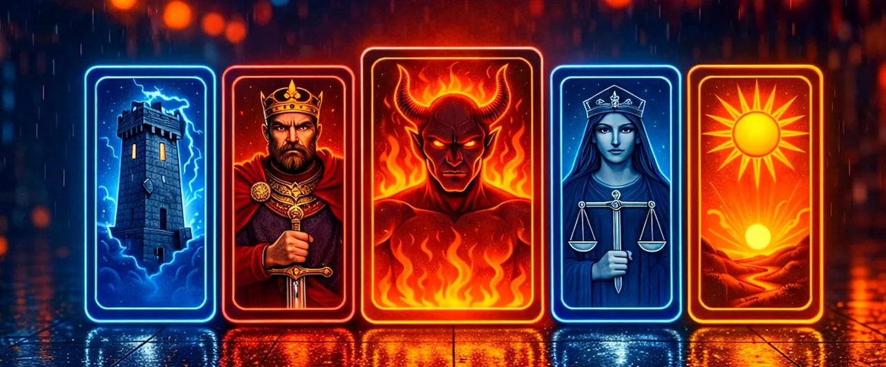 Первая карта — «Двойка Кубков» (перевернутая). Перевернутая «Двойка Кубков» в первую очередь про отношения, и не обязательно романтические. Знаете это ощущение, когда сидите с близким человеком за одним столом, а разговор не клеится? Вроде бы все как обычно, но между вами повисло что-то невысказанное, и оба делают вид, что этого нет. Карта не говорит, что все рухнет. Она говорит: хватит притворяться, что все в порядке, потому что от этого притворства становится только хуже.