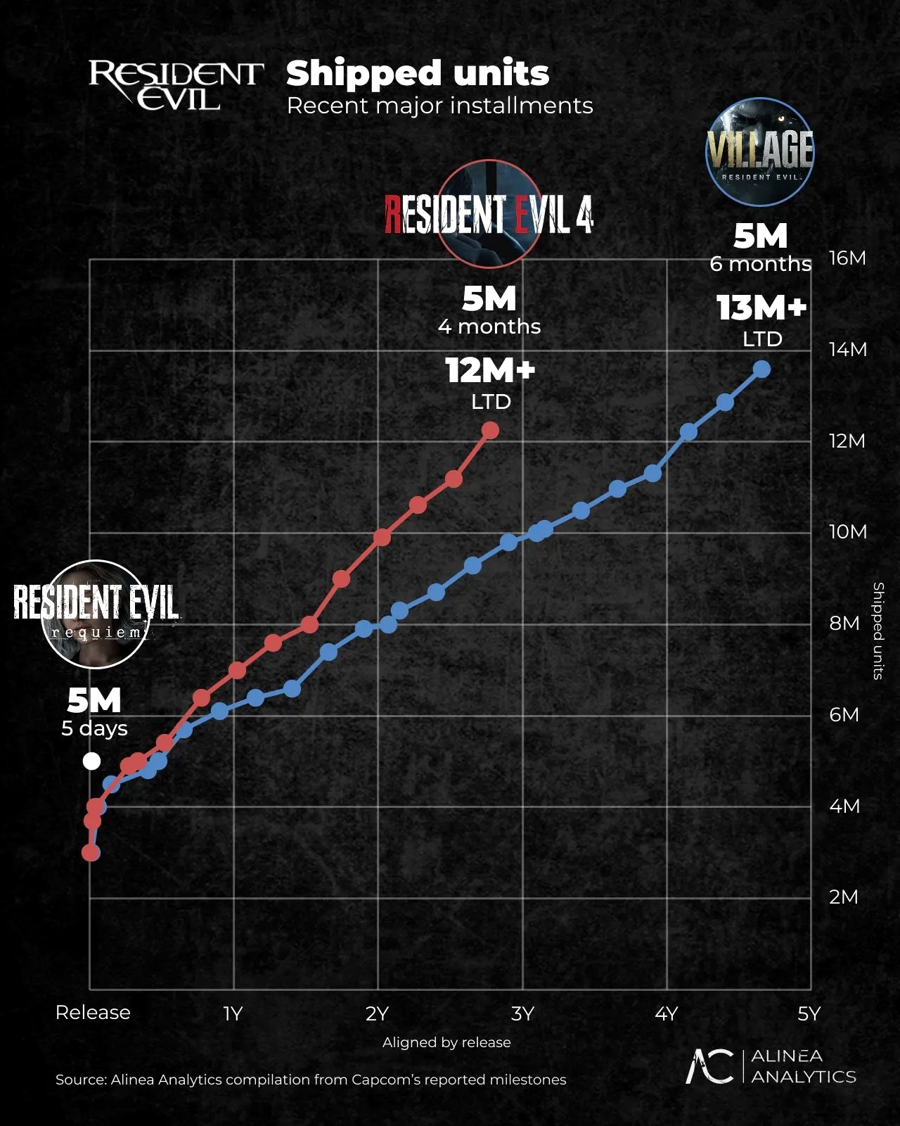 Capcom сообщила, что продажи Resident Evil Requiem превысили 5 миллионов копий, но не стала раскрывать разбивку продаж по платформам. Зато такая разбивка есть у аналитиков Alinea Analytics.