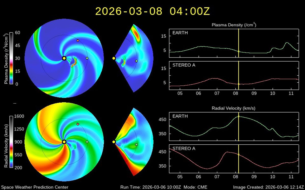 В худшем случае прохождение через поток плазмы 8 марта может принести нам геомагнитную бурю класса G1. Пока нет информации о том, что в потоке частиц присутствуют области со-вращающегося взаимодействия, способные усилить давление на магнитосферу.