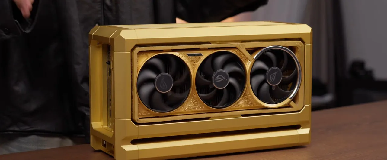 Видеокарта дорожает вслед за золотом: GeForce RTX 5090 ROG Astral Real Gold Edition содержит около 5 килограммов этого металла. Для сравнения: позолоченная GeForce RTX 5090 ROG Astral Dhahab OC Edition получила всего несколько граммов золота.