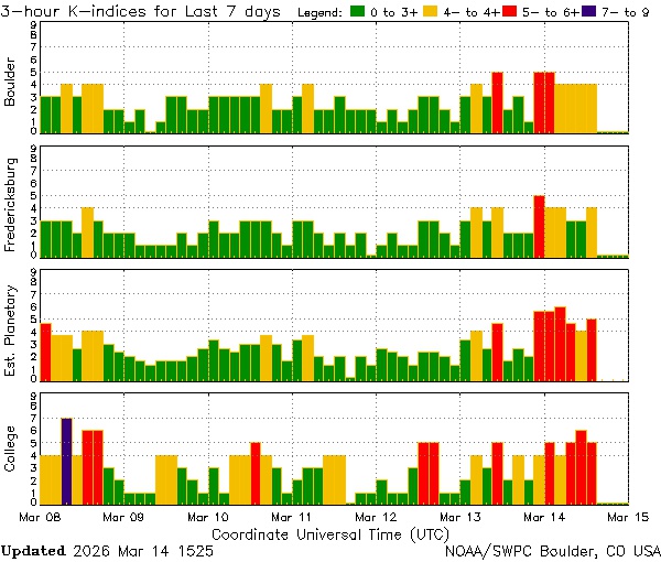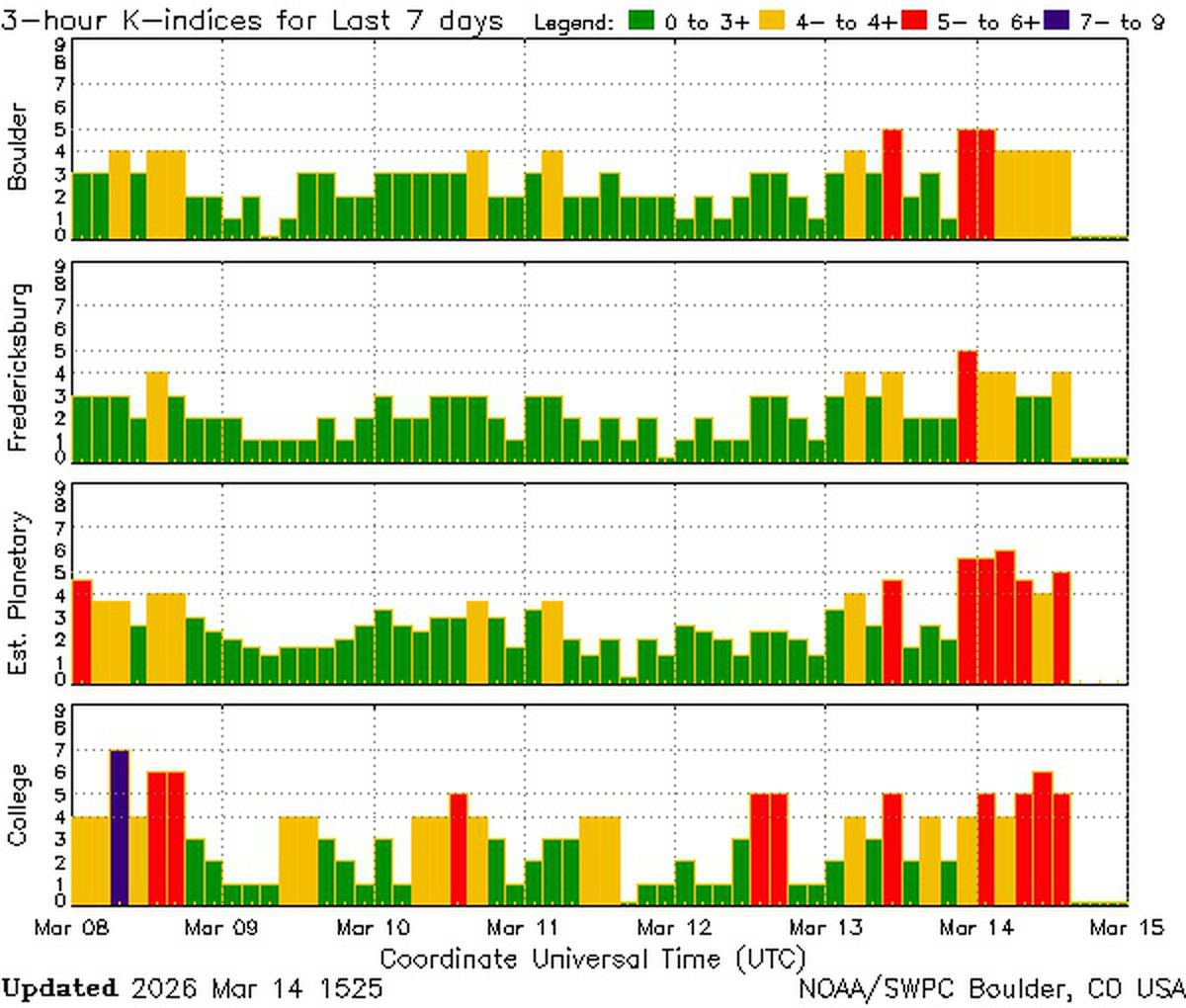 Геомагнитная буря 14 марта смогла превзойти ожидания аналитиков. Изначально предполагалось, что рано утром по Москве пройдет довольно короткая магнитная буря класса G1, реальность оказалась иной.