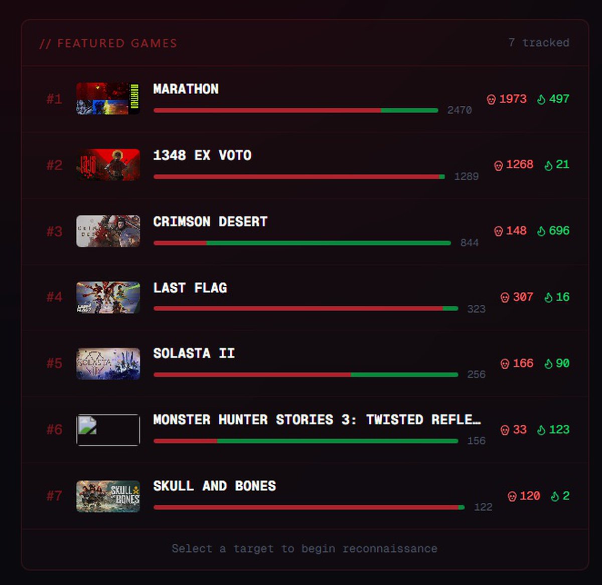 Например, игроки могут оценить шансы на выживание Marathon (большинство верит в провал), Skull and Bones (та же история), Solasta 2 (та же история) и Last Flag (вы угадали).