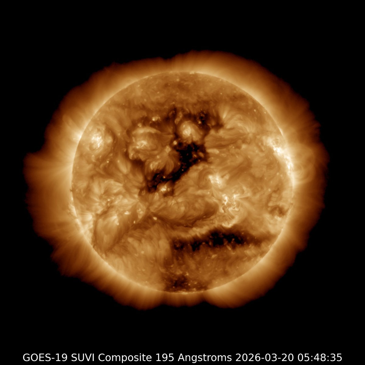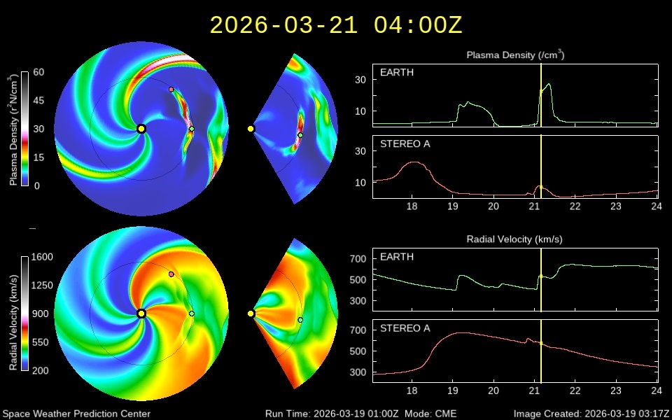 Аналитики NOAA США пересмотрели прогноз серии магнитных бурь, которая должна была начаться поздно вечером 19 марта. Поток солнечной плазмы, инициирующий геомагнитную бурю, немного задержится.