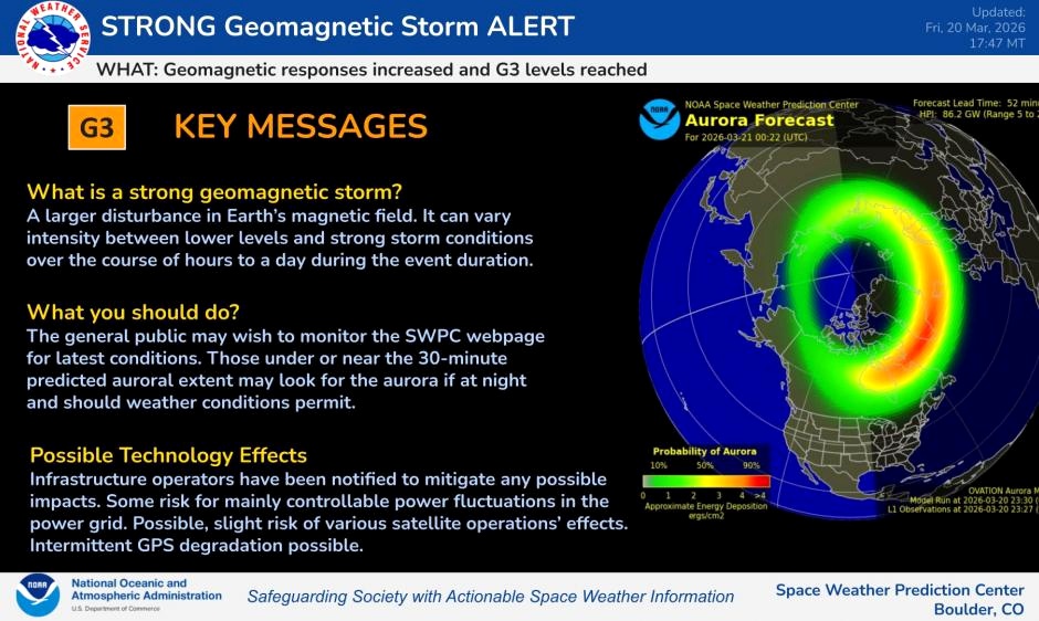 Поздно вечером 20 марта на Земле все-таки началась магнитная буря — шторм, вызванный встречей планеты с корональными выбросами массы Солнца, немного задержался. Аналитики недооценили не только скорость частиц, но и их воздействие на магнитосферу.