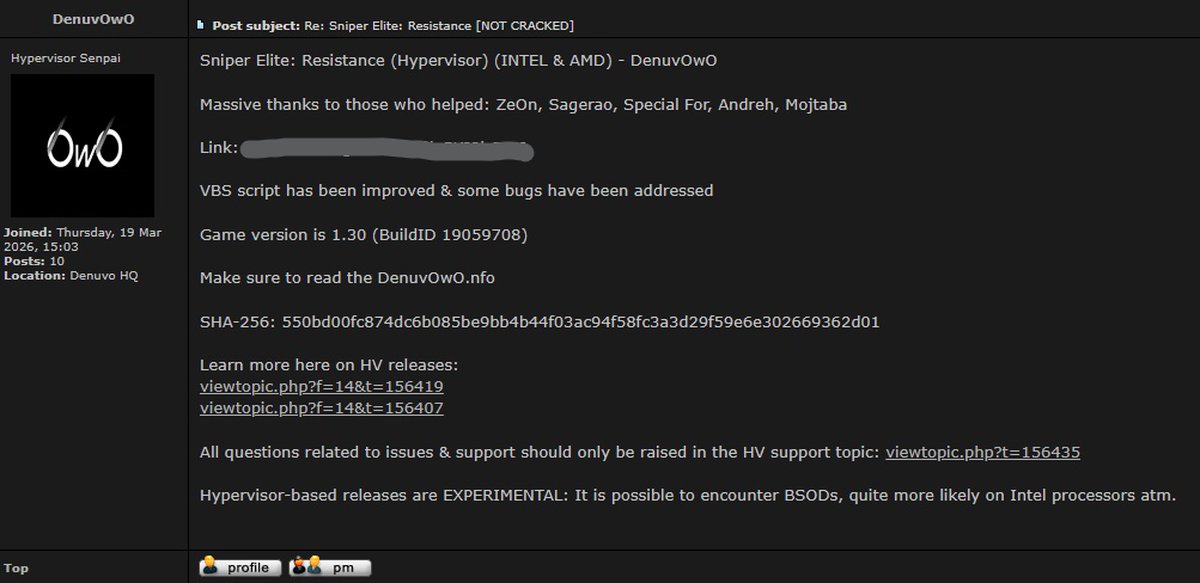 Все выглядит так, словно адаптацию гипервизора под игры удалось более-менее поставить на поток: подобные обходы защиты появляются достаточно регулярно. Разработчики Denuvo пока не высказывались насчет нового способа обхода защиты.