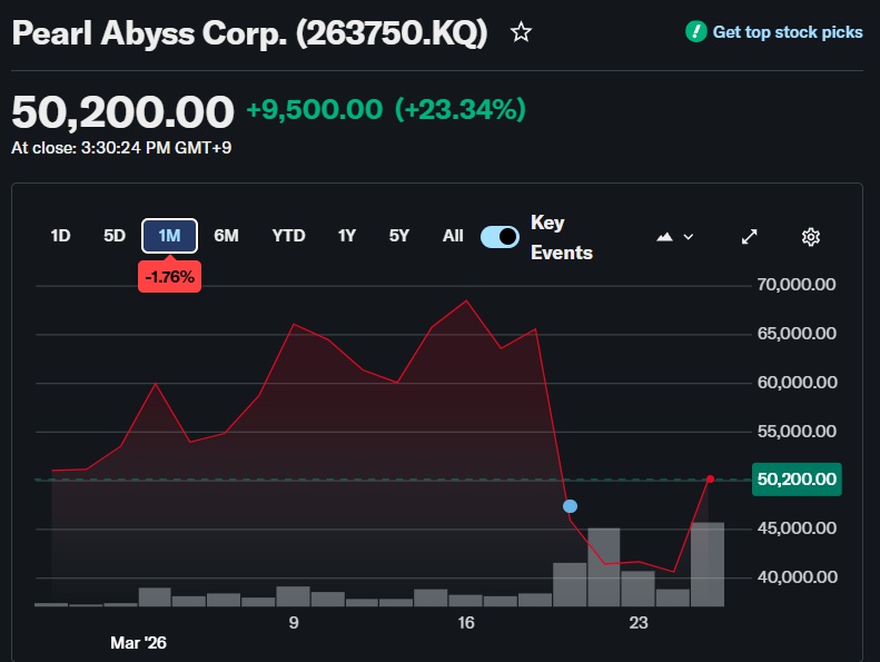 Другой интересный момент: инвесторы активно закупали акции Pearl Abyss прямо на открытии торгов, с тех пор цена идет вверх довольно медленно. Вероятно, других резких скачков капитализации студии пока можно не ждать.