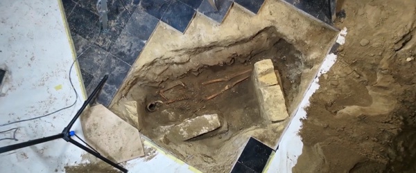 Скелет был обнаружен на месте, где в XVII веке находился алтарь церкви; в старину под алтарем хоронили особенно важных людей. Среди останков обнаружили остатки мушкетной пули, а в захоронении — французскую монету.
