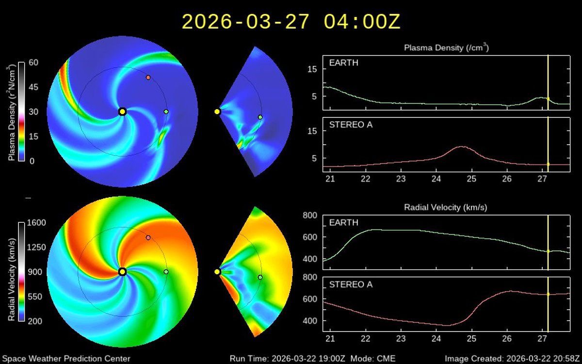 С учетом известных сложностей при прогнозировании поведения потоков солнечной плазмы можно предположить, что 27 марта мы можем увидеть несколько слабых и локальных магнитных бурь в дополнение к основной.