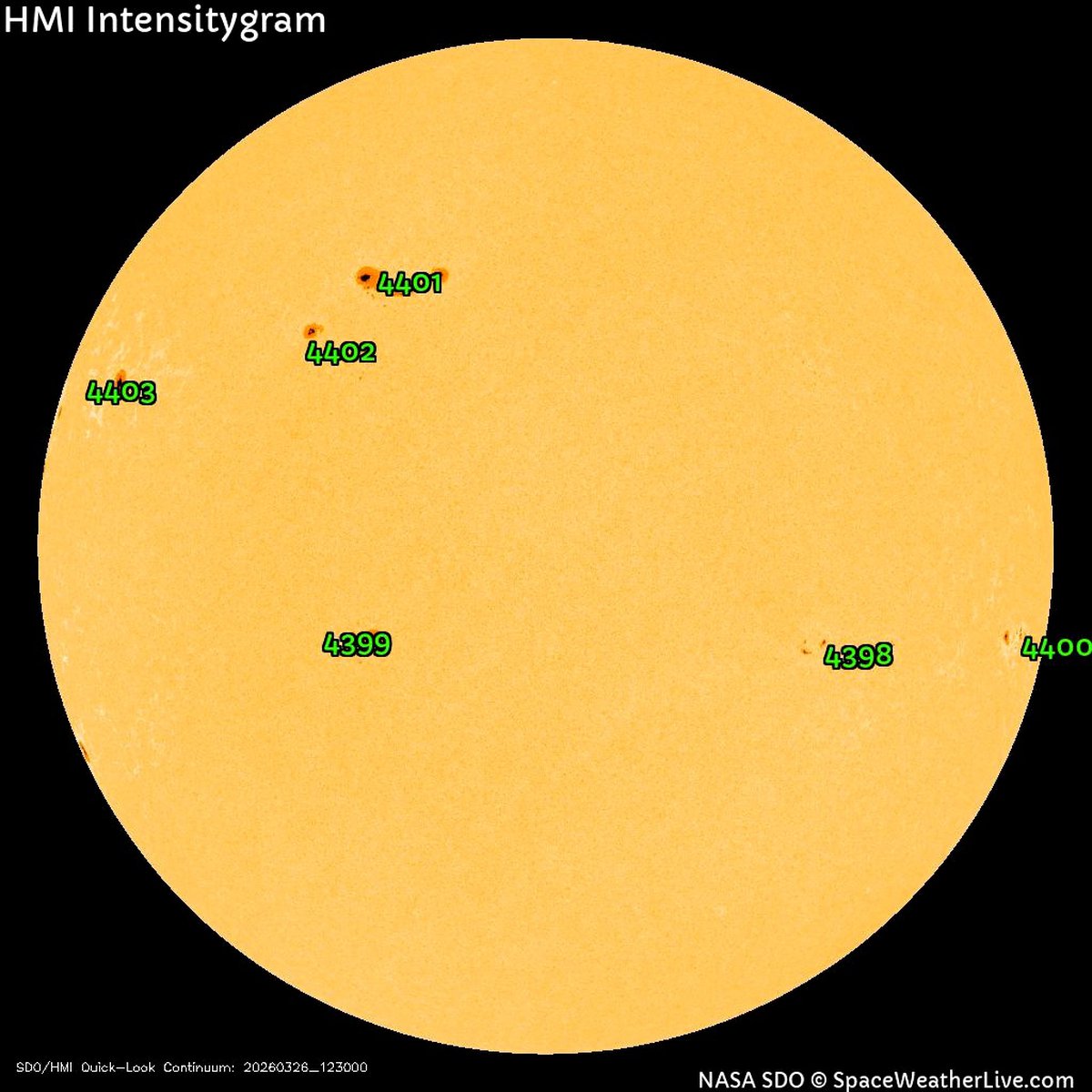 26 марта солнечное пятно AR4403 выдало первую за довольно долгое время вспышку предмаксимального класса M, причем она, видимо, сопровождалась корональным выбросом массы. Положение пятна таково, что выброс пойдет к Земле.