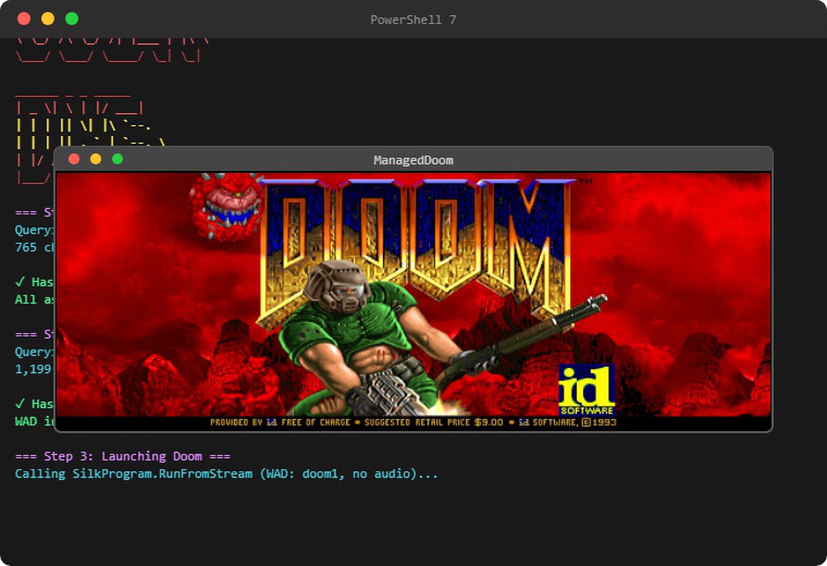Стоит отметить, что через DNS запускалась не оригинальная версия Doom, а Managed Doom, написанная на языке C#. После ряда доработок дистрибутив проекта уменьшили до 1,9 мегабайта; в частности, пришлось пожертвовать звуком.