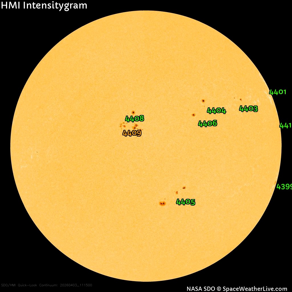 За последние сутки звезда выдала несколько вспышек предмаксимального класса M и минимального класса C. Особую активность проявляет пятно AR4409 с нестабильным магнитным полем.