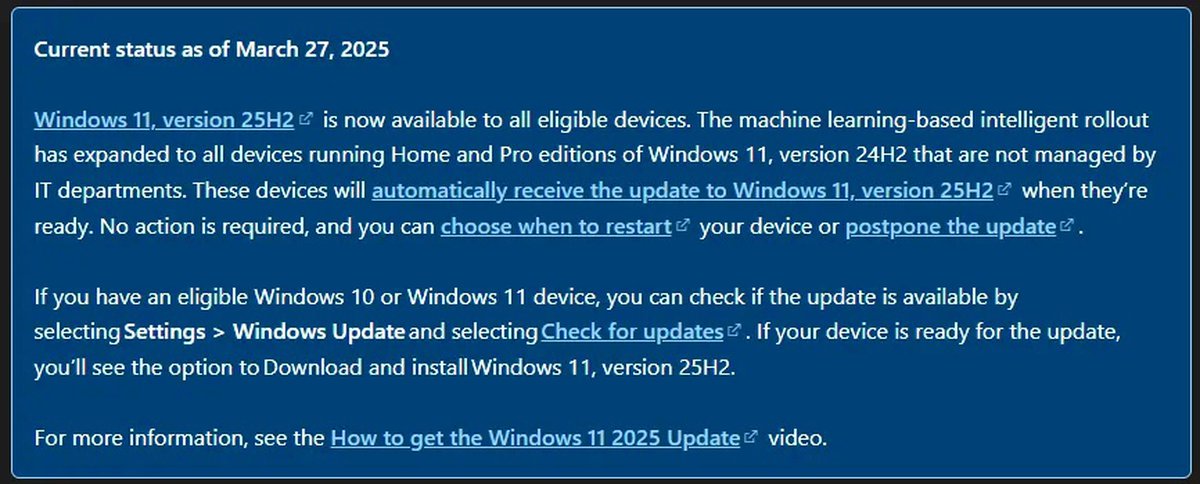 Корпорация Microsoft инициировала принудительное обновление Windows 11 до актуальной версии 25H2. В первую очередь обновление нацелено на пользователей, до сих пор сидящих на Windows 11 24H2.
