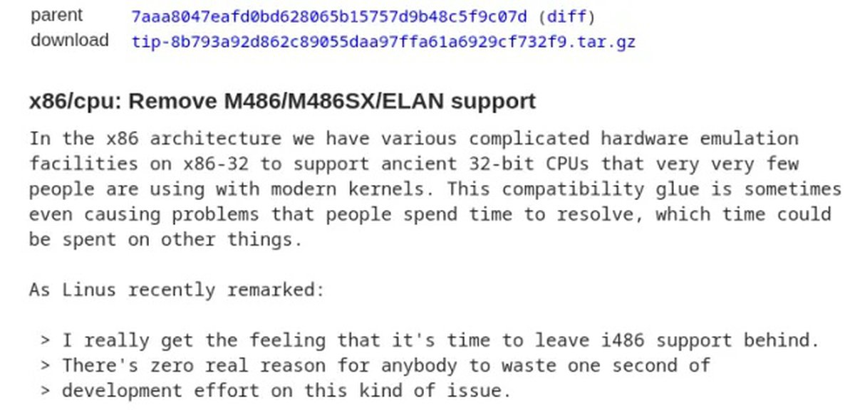 Если все пройдет нормально, то в последующих релизах Linux будут убраны и другие элементы поддержки i486. За отказ от поддержки этой архитектуры давно выступает создатель Linux Линус Торвальдс: сейчас, по его словам, нет никаких реальных причин поддерживать эту архитектуру.
