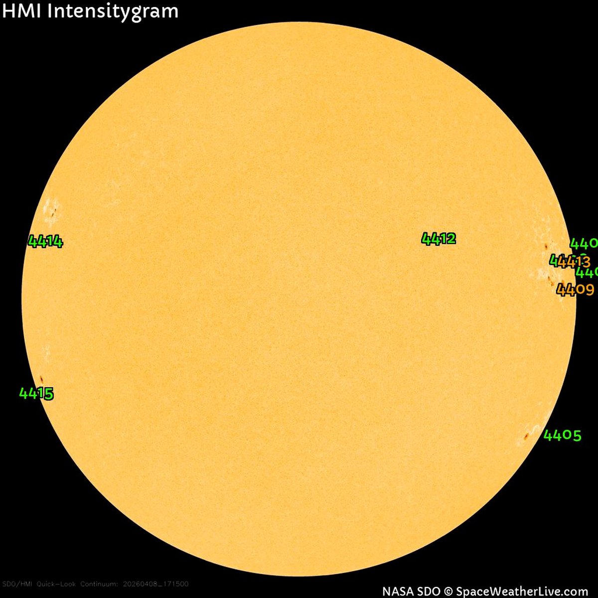Оба пятна находятся на самой границе солнечного диска и вот-вот скроются с видимой части звезды. Маловероятно, что сейчас одно из этих пятен выдаст мощную вспышку с корональным выбросом массы в сторону нашей планеты.