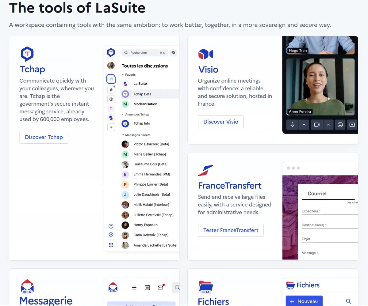 В частности, сотрудников Национальной кассы медицинского страхования переводят на «суверенные» аналоги Microsoft Teams, Zoom и Dropbox. Вместо них используется единый набор цифровых инструментов под названием La Suite.