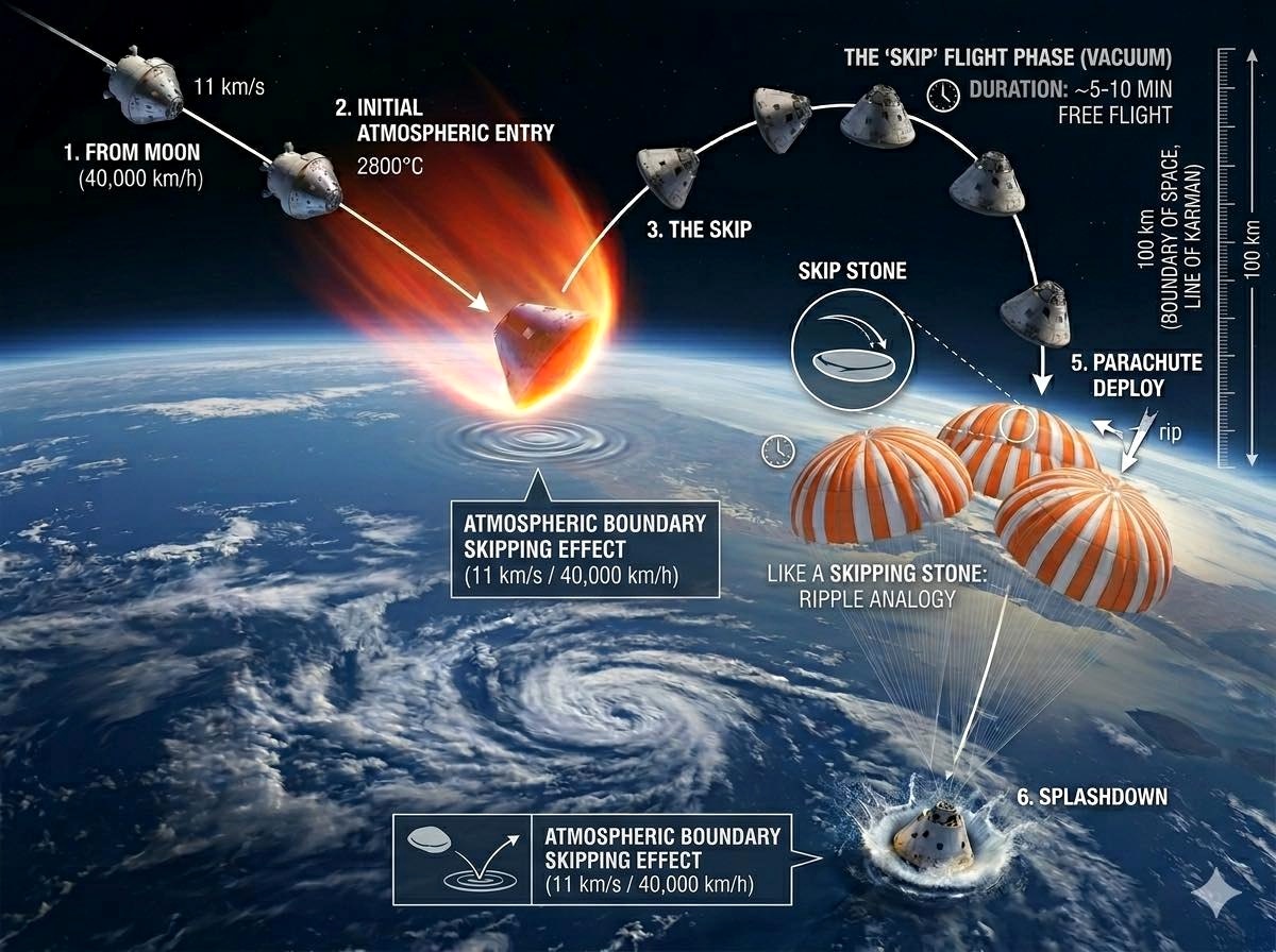 За это время астронавты долетели до Луны, облетели ее, отсняв темную сторону спутника, и вернулись к Земле. Во время входа в атмосферу Земли корабль двигался на скорости около 40 тысяч километров в час, но тепловой щит, с которым возникли проблемы в миссии «Артемида-1», отработал нормально.