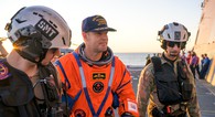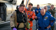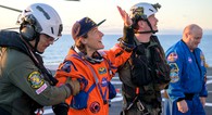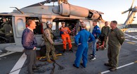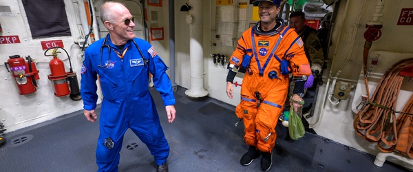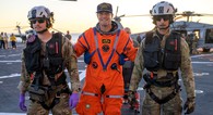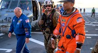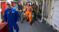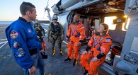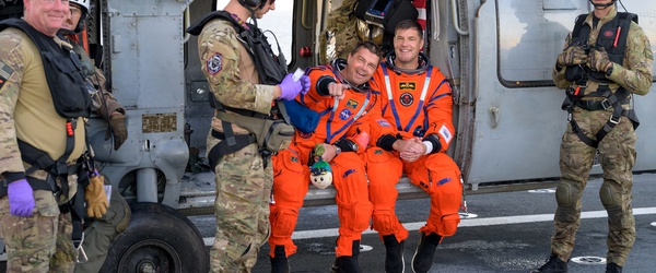 После извлечения из корабля четверку астронавтов доставили на борт десантного корабля ВМС США, помогающего NASA с эвакуацией. Здесь Рида Уайзмана, Виктора Гловера, Кристину Кох и Джереми Хансена встретил администратор NASA Джаред Айзекман.
