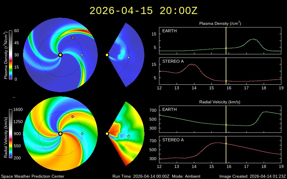 На границах таких потоков могут образовываться области со-вращающегося взаимодействия, оказывающие дополнительное воздействие на магнитосферу. Точнее оценить наличие таких областей можно будет 16 апреля.