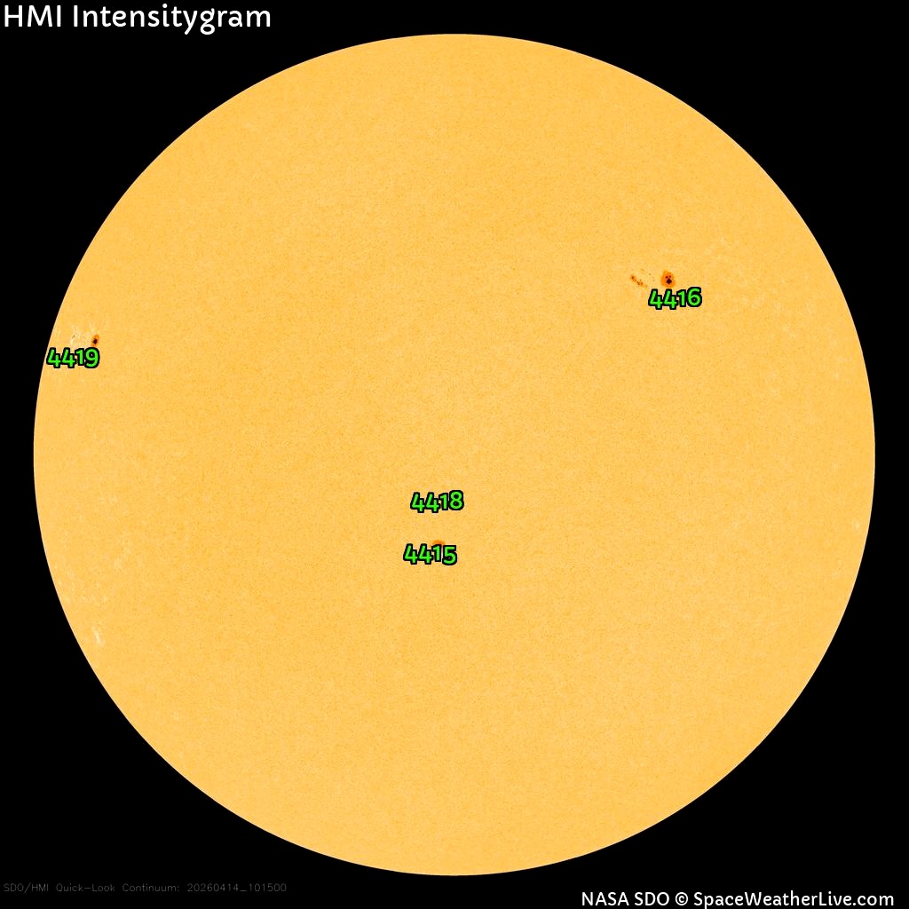 Само по себе Солнце демонстрирует минимальную активность. Крупные пятна на видимой части звезды (сейчас их 4) обладают стабильными магнитными полями, вероятность вспышек максимального класса X и предмаксимального класса M равна 1% и 10% соответственно.