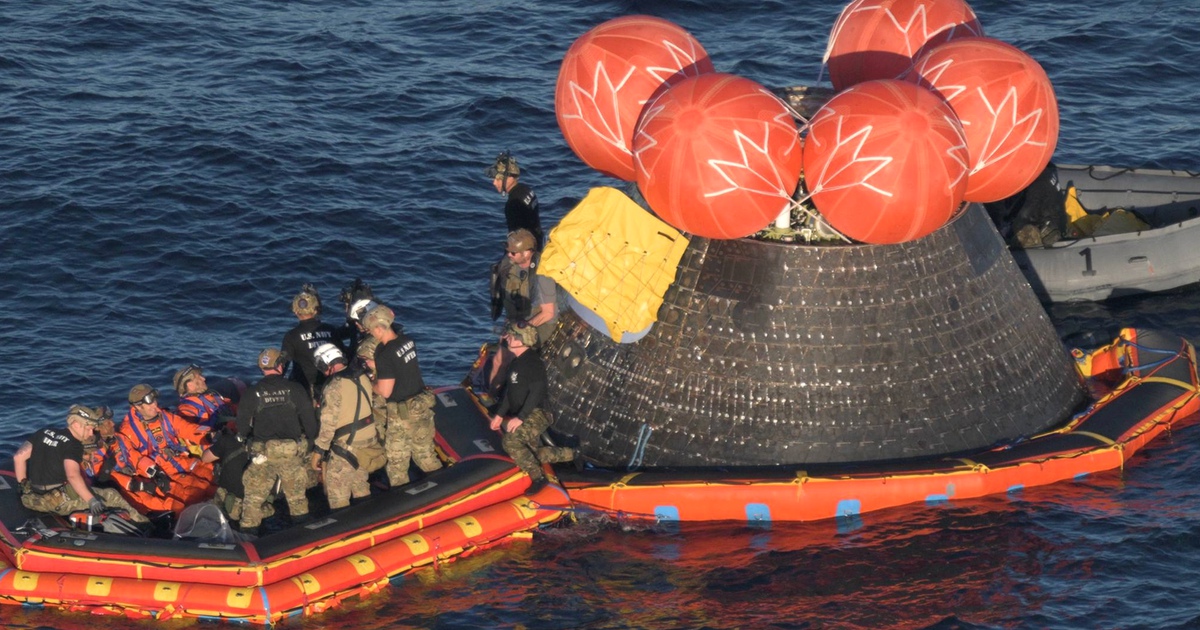 Путь астронавтов после извлечения из корабля мы уже видели: вертолет доставил их на десантный корабль, обеспечивающий эвакуацию, а затем экипаж "Артемиды-2" перевезли на базу NASA.