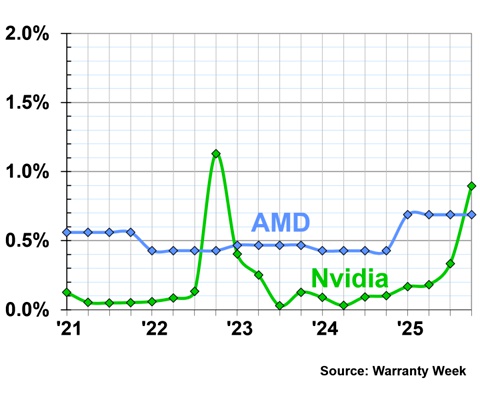 Теперь по количеству гарантийных случаев Nvidia превосходит AMD. Прежде продукция Nvidia была гораздо качественнее; правда, почему-то наблюдался пик обращений в конце 2022 года.