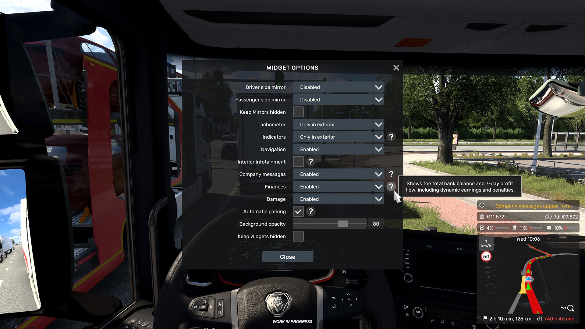 - Улучшен новый интерфейс: появились виджеты «Финансы» и «Повреждения». Во включенном состоянии они отображаются в правом нижнем углу, над навигатором.