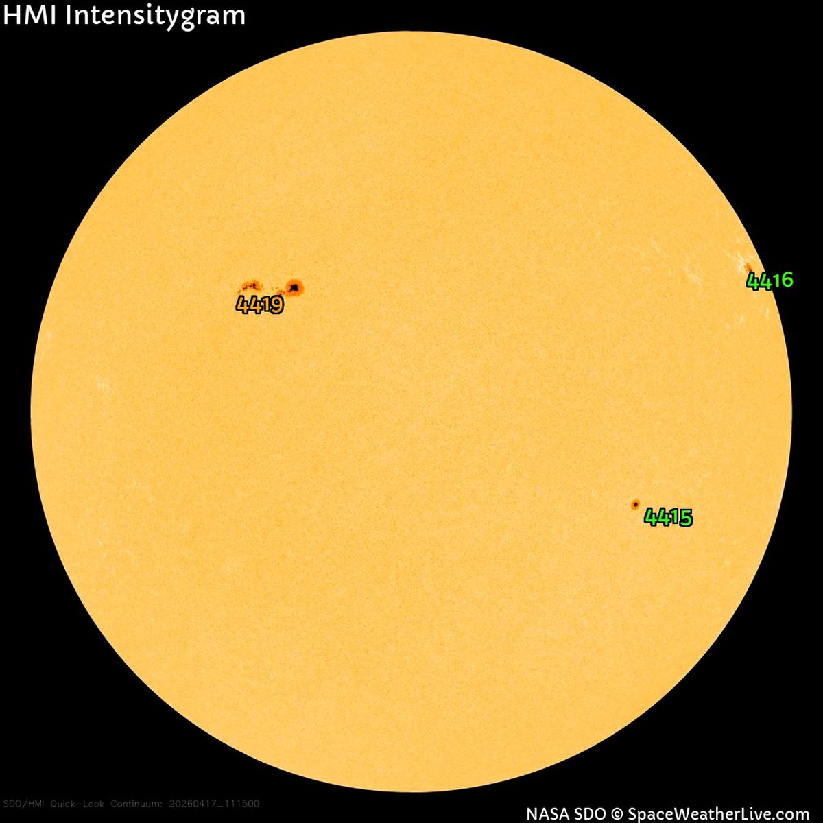 На видимой части Солнца все еще есть три нестабильных пятна, одно из них (AR4419) обладает нестабильным магнитным полем. Ожидается, что это пятно может выдать мощные вспышки, но пока этого не произошло.