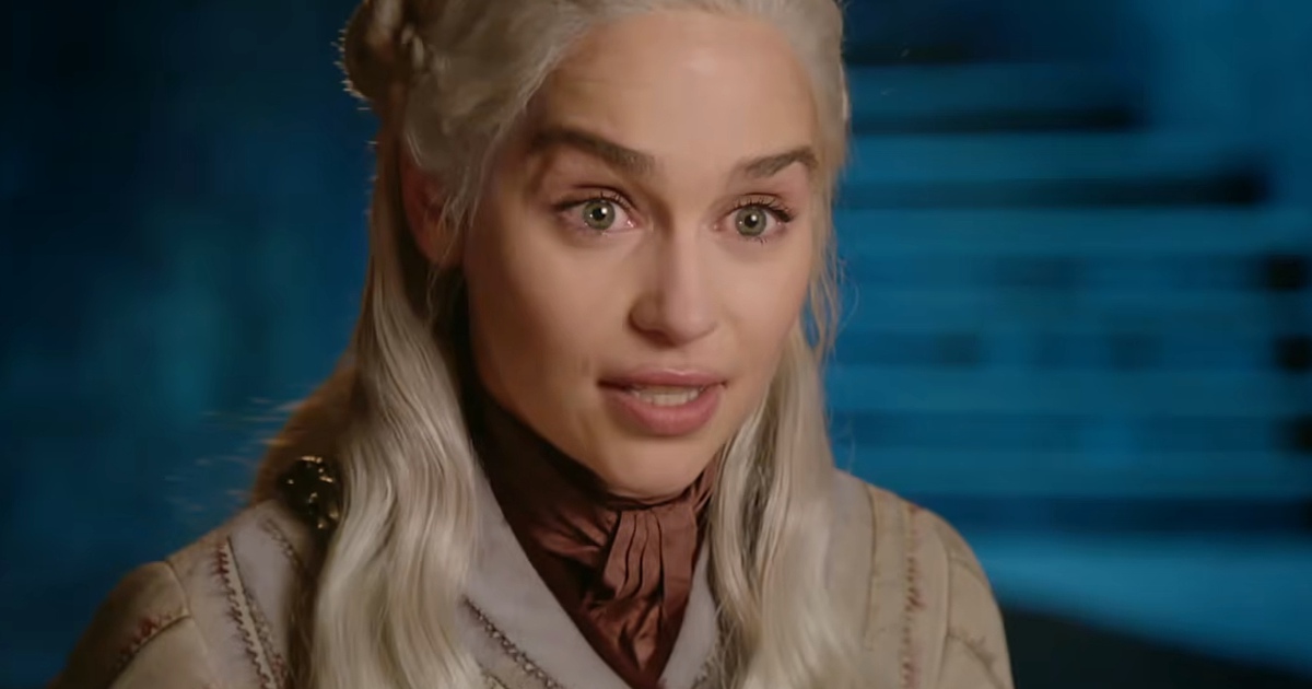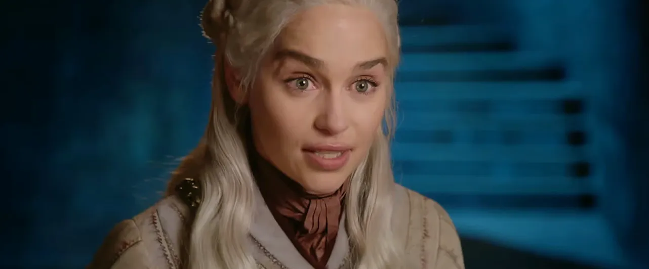 Ролик посвятили не началу, а завершению шоу: в фичуретку попали прощания актеров, отснявшихся в последних сценах. У нас есть кадры с Гвендолин Кристи, Софи Тернер, Эмилией Кларк, Николаем Костер-Вальдау, Питером Динклейджем и так далее.