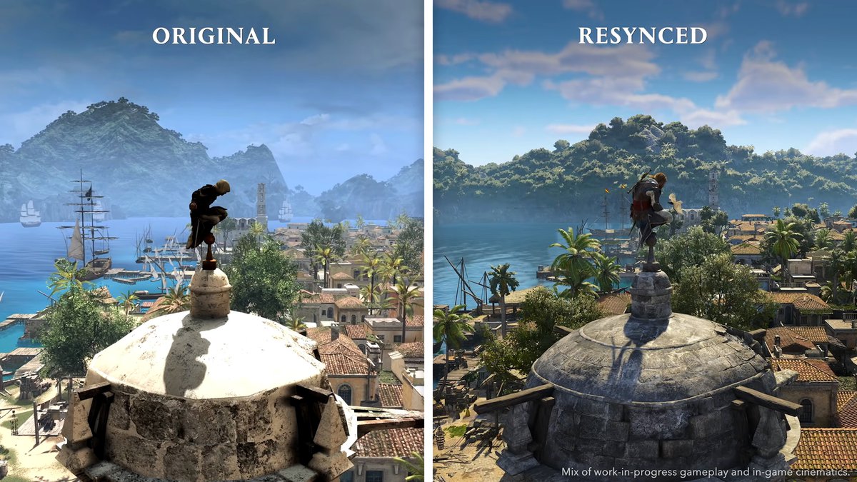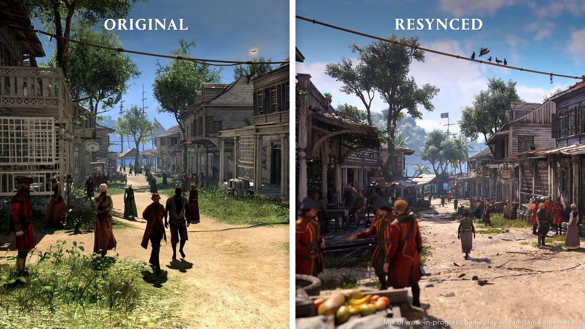 Также разработчики показали пару кадров, сравнивающих графику в ремейке и оригинальной Assassin's Creed IV: Black Flag. Хорошо видно, что детализация игрового мира сильно выросла, причем здания, например, не всегда похожи на оригинальные.
