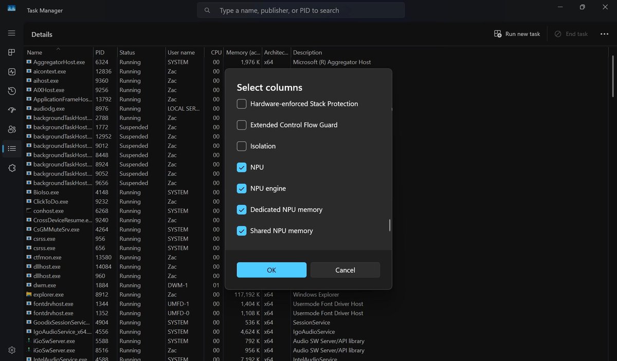 Новая версия Диспетчера задач будет показывать процессы, работающие на NPU — специальных ядрах, предназначенных для ИИ-вычислений. Здесь же будут отображаться ИИ-процессы, выполняющие вычисления на GPU.
