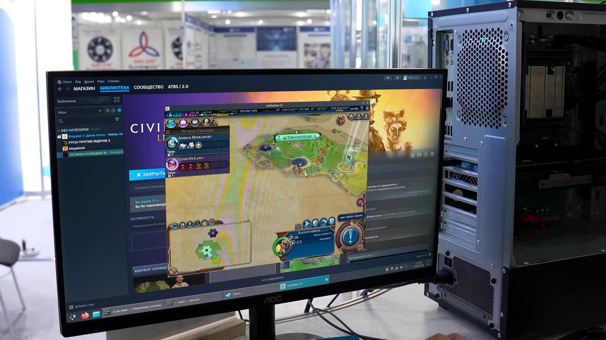 Также на системе с процессором «Иртыш» запустили Civilization 6. В низком разрешении игра показала больше 30 кадров в секунду, видимо, в полноценном разрешении цифры были значительно хуже.