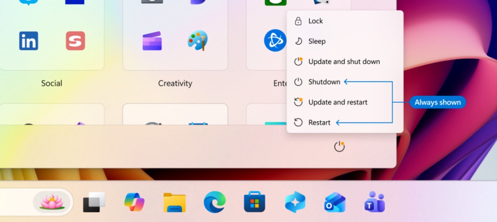 Также появилась возможность выключить или перезагрузить ПК, не устанавливая обновления. Соответствующие опции добавили в меню рядом со старыми пунктами.