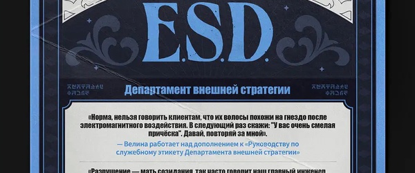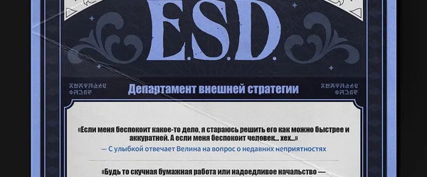 Велина возглавляет департамент Нормы, это персонаж с ветряным уроном и специальностью «Аномалия». Если Норма в основном имеет дело с техникой, то Велина решает любые вопросы — и технические, и не очень.