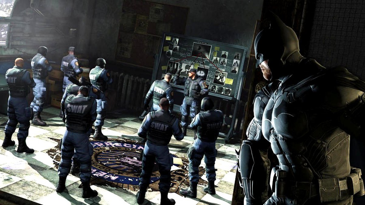 Драки наполнены разнообразием, изобилием гармоничных объединено-темных красок и сочнейшим добиванием противников. В общем, если говорить о боевой системе в целом, то она практически такая же, как и в Arkham City, если не считать парочку новых приёмов, которые разработчики понапихали сюда. Ну и раз уж мы заговорили о геймплее то… ничего не изменилось! Мы прячемся, убиваем, прячемся, убиваем, разгадываем загадки, потом прячемся и убиваем. Мы всё так же используем всякие гаджеты, парим по воздуху, выполняем квесты. Складывается впечатление, что это всё та же Arkham City, которую просто разделили на 2 части. Разработчики постарались расширить арсенал бетса, добавив туда ещё больше гаджетов. Ну, всё равно, если говорить о геймплее, то он по прежнему «ВАУСУКПЗДЦКРУТОЙ». Перевести дух позволяют не очень длинные, но очень классные видео-вставки с прекрасной озвучкой, которые раскрывают и ещё больше передают сюжетную линию. Ну и мультиплеер, на мой взгляд, лишний в этой игре. Зачем? В него вряд ли будет много людей играть, пройдя основную сюжетную кампанию, игру удалят. Сам мультиплеер представляет собой противостояние между бандюгами и бэтсем с робином. Играя за бандитов, игра превращается в полно УГ, ведь что могут эти бандиты? Играя за бэтса или робина, мы должны устранять бандитов.