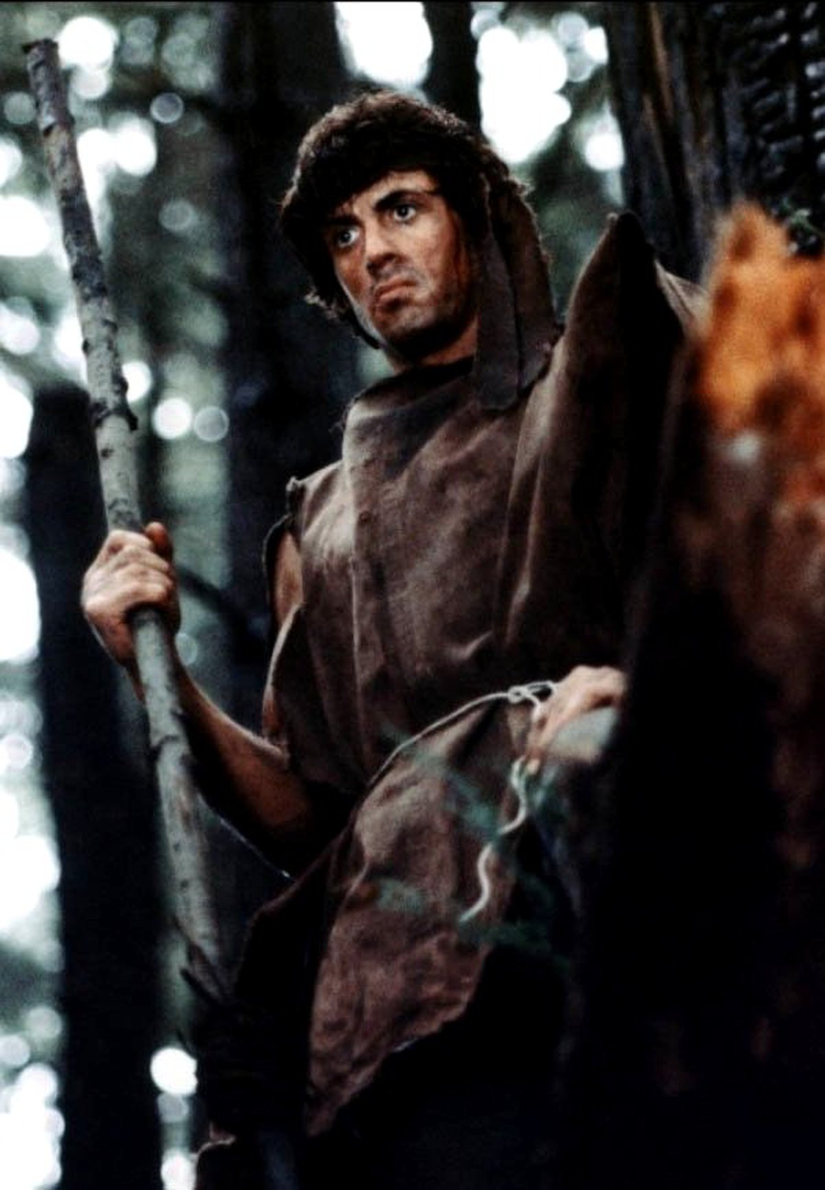 Как я уже говорил, Джон Рэмбо (Сильвестр Сталлоне) - бывший военный, ветеран войны, настоящая "боевая машина", как говорят о таких, как он. Война изменила его: он стал намного мрачнее и угрюмее, чем он был. На его глазах погибали люди, многих разрывало на куски. На войне, у него были друзья, которые могли его поддержать в трудную минуту - она их забрала. Он не раз был на волоске от смерти и не раз попадал в беду. Тем не менее, он способен выжить в любых погодных условиях, обучен обращаться с оружием: огнестрельным или холодным,умеет жить вне цивилизации. Он лучший в своём деле и никогда не сможет найти места в том мире, где его зовут бродягой. Примечательно то, что его образ был сильно переосмыслен в фильме, поскольку Рэмбо в книге немного отличается от Рэмбо в фильме. Так, по книге Рэмбо убивает около пятнадцати человек и хладнокровно устраняет полицейских, в то время, как в фильме был убит лишь один человек, при чём Джон был виновен в этом инциденте лишь косвенно. Соглашусь, что он серьёзно ранил немало людей, покушался на жизнь многих полицейских, но в итоге никого, в принципе, намеренно не убил, что немного смягчает его образ, но не намного (В последующих частях он убил куда больше людей). Его судьба в книге куда жёстче, чем в фильме, но... давайте не будем об этом!