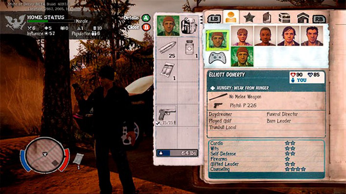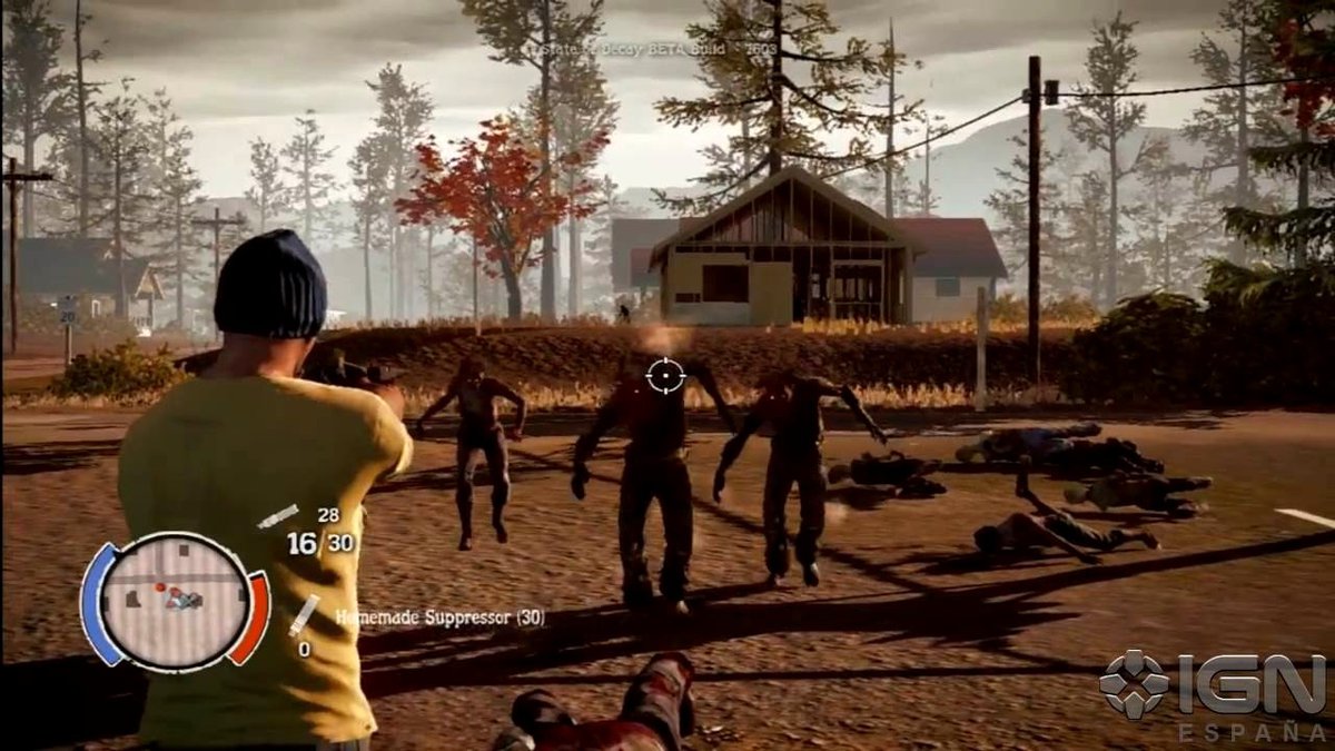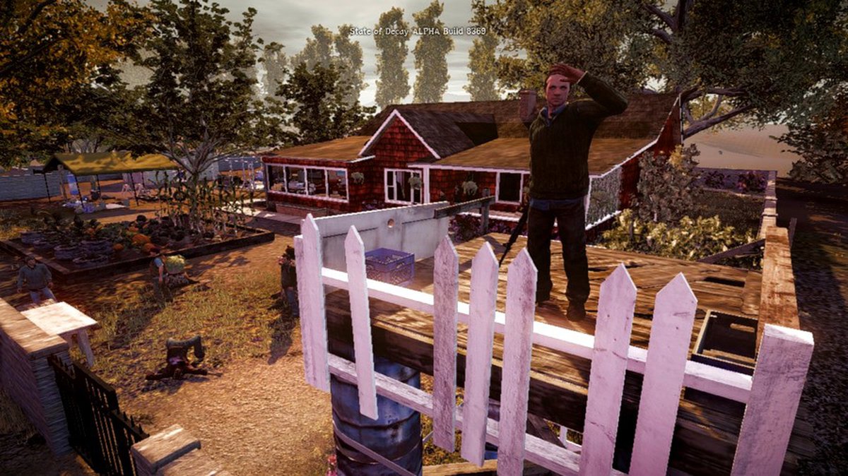 State of Decay - очередной(уже приевшийся) представитель survival-хоррора, который абсолютно ничего нового в жанр не приносит, да и что там вообще уже можно придумать, так или иначе в других подобных играх всё уже реализовано. Как я думаю, авторы удачно попали с местом действия, это глухая местность где-то в Америке, но довольно-таки живописная и то что нужно для зомби-апокалипсиса: леса, луга, поля, фермы, небольшого размера городишки, где полным-полно зомби. В общем, всё как в любимых фильмах о зомби. Непонятный сюжет в игре, главный герой, вроде есть, а вроде и нет, с самого начала игры мы начинаем за выжившего, который уже состоит в группе.
