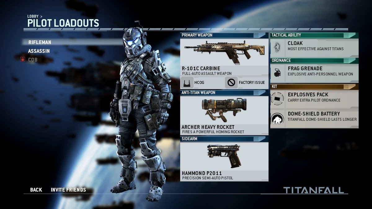 После краткого инструктажа, где нам объясняют основы управления и предлагают немного отточить свои навыки на ботах, нас отправляют в первый бой. По началу в бета версии нам доступно только два класса пилотов и два вида титанов. В дальнейшем нам открываются еще один класс пилотов и один вид титанов. А так же по три настраиваемых слота экипировки титанов и пилотов, которые можно настроить как душе угодно. Давайте рассмотрим их подробнее.