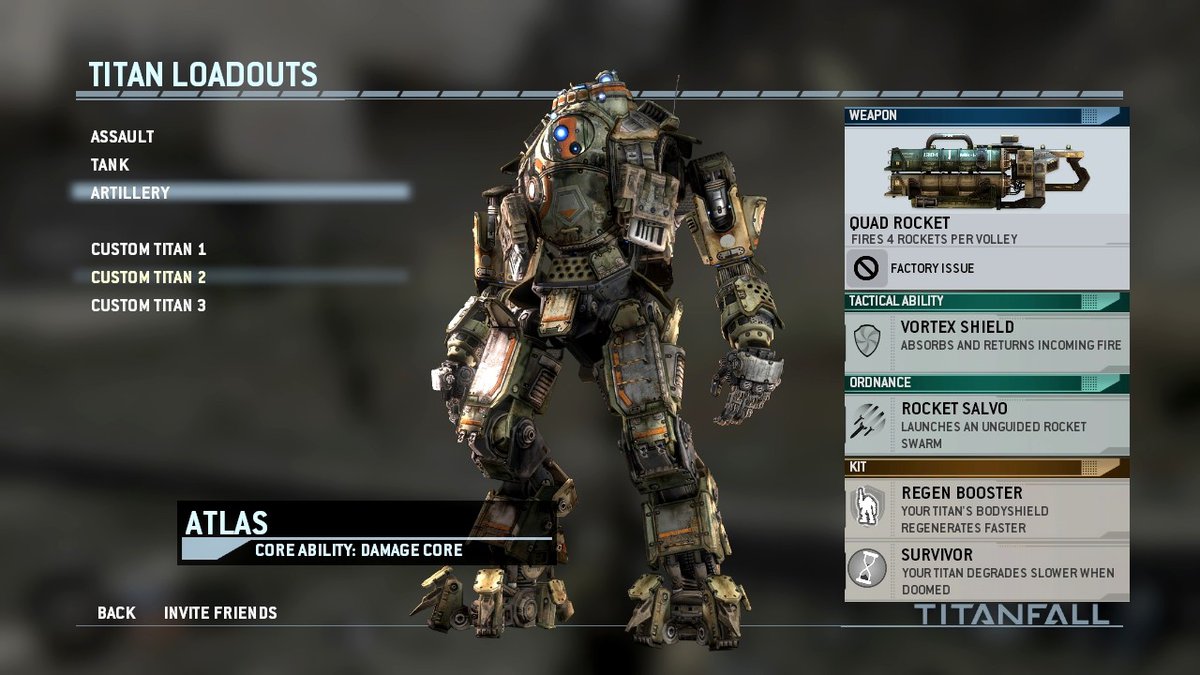 У всех титанов в качестве второго оружейного слота доступны два типа ракет: Rocket Salvo - наносят приличный урон, работают как по пехоте, так и по титанам, и Slaved Warheads - ракеты с захватом цели, способны захватывать только титанов. Лично я предпочитаю последние, так как титаны и так достаточно эффективны против пилотов.