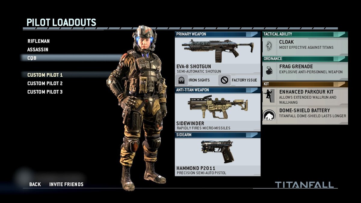 На втором уровне нам открывается третий и последний (в бета версии) класс - CQB, вооруженный дробовиком - оружием с самым мощным, на данный момент в игре, уроном на ближней дистанции. На средних и дальних дистанциях лучше не использовать. На втором слоте уже знакомый нам пистолет Hammond p2011. В качестве орудия против титанов таскает за пазухой так же знакомый нам крупнокалиберный пулемет Sidewinder.