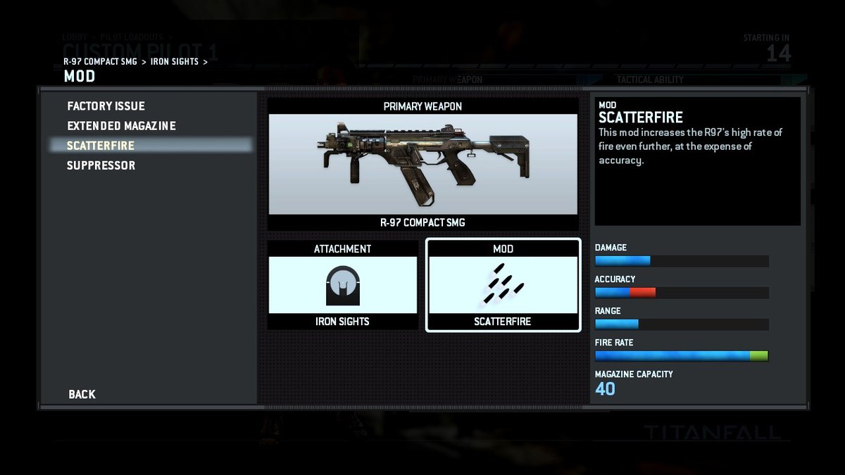 По мимо различных видов вооружения, для всех классов доступны перки. Они делятся на две категории и общие для всех классов - Tier 1 и Tier 2, выбрать можно одновременно по одному перку из каждой категории. В Tier 1 перках нам предлагают Enchanced Parkour Kit, который позволяет дольше бегать и висеть на стенах; Explosives Pack, увеличивающий боезапас гранат; и, напоследок, Power Cell, который позволяет быстрее перезаряжать тактическую способность. В Tier 2 перках представлены Minion Detector, постоянно отображающий расположение ботов на миникарте; Warpfall Transmitter, ускоряющий десантирование вашего титана; и Dome-Shield Battery, увеличивающая время щита на вашем титане, после его десантирования.