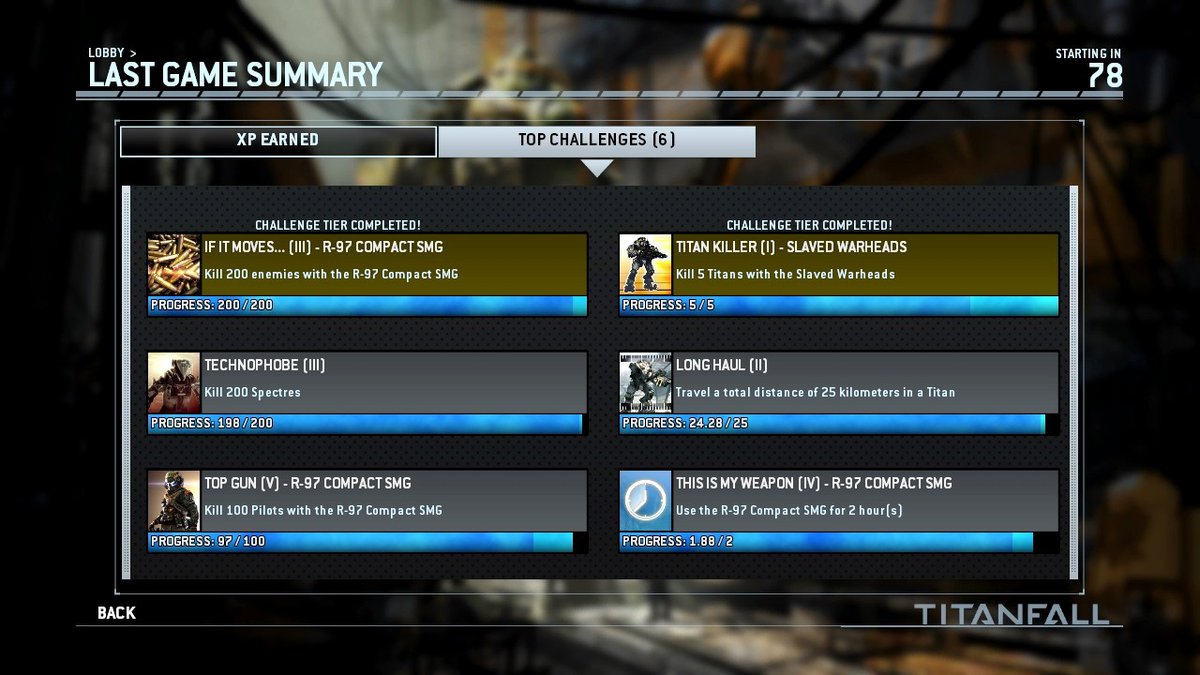Отдельно хотелось бы отметить задания. На самом деле это нечто среднее между ачивками и заданиями. Нас то просят просто набить фраги с какого либо оружия, то, например, пилотируя титана, выдернуть противника из сердца вражеского гиганта. Порой встречаются и такие задания, как "Пройти 50 киллометров" и прочее, на что только хватило фантазии у разработчиков.