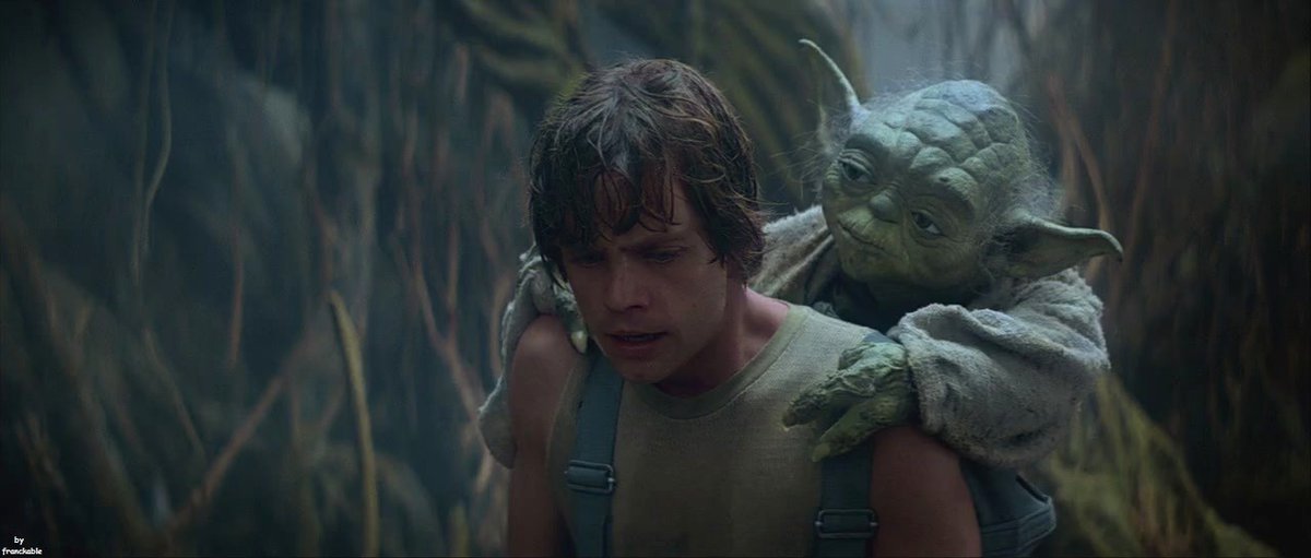 Я бы назвал этот фильм бенефисом Люка Скайуокера, образ которого полностью раскрывается именно в этой части, благодаря, блистательной игре Марка Хэмилла, разумеется. Люк в этом фильме - более решительный, смелый, зрелый персонаж, сильный духом, если хотите. А также впервые для себя познаёт природу Силы, которой его обучает великий магистр Йода. Вообще, Йода сыграл очень большую роль в становлении Люка как Джедая: Йода пытается раскрыть сущность молодого Падавана, освободить его "чашу" разума от насущного и наконец-таки, просто поверить. Поверить в себя, свои силы. Ведь, Люк - является единственной надеждой Повстанцев на победу в этой Галактической войне, надеждой Галактики на светлое будущее, хоть и сам он этого не понимает.