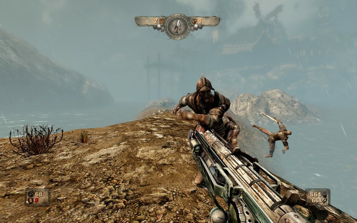 Так вот, сам уровень представлен весьма посредственно. С одной стороны да, он совершенно новый. С другой видно, что его делали второпях. Где-то идет дождь. А стоит отойти на небольшое расстояние, так он сразу же исчезает. Новые монстры, у которых за плечами есть и огнестрельное оружие, еле-еле могут попасть по главному герою. Я еще молчу про их скорость передвижения... Достоинством здесь является битва с Тором, но не более.