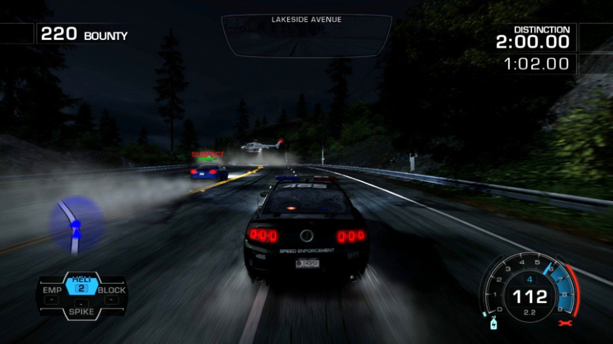 Разумеется, у каждого вида гонок свои нюансы, смотря какую сторону выбрали вы. По ходу прохождения карьеры, мы зарабатываем деньги и опыт, который даёт возможность получить новый уровень известности, а с этим и новые машины, трассы и приспособления. Играя за полицейского, вы можете вызывать вертолёт и скидывать полосу с шипами перед соперниками, стрелять ЭМИ и ставить заграждения. Гонщики могут сбрасывать те же шипы, производить выстрел ЭМИ, но могут и глушить его у копов, а также им доступно турбоускорение.