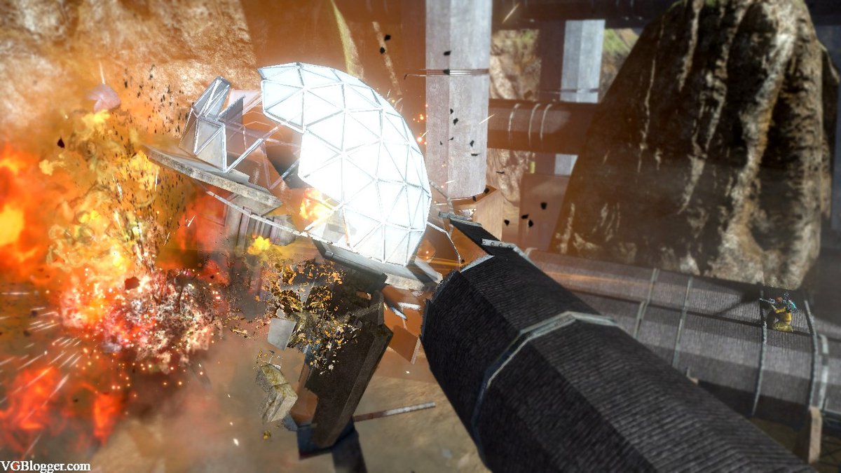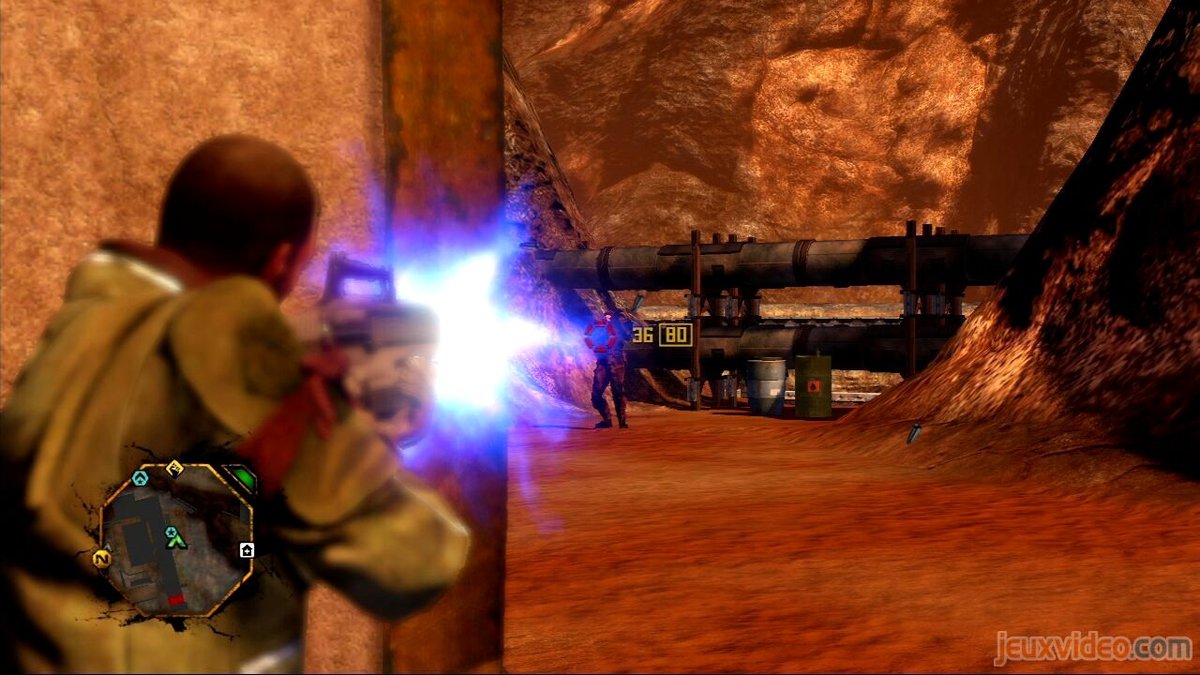 Geo-Mod - "соль" игры. Этот игровой движок, как я говорил, наделал не мало шуму в 2001-ом пообещав дать игрокам возможность разрушить всё и вся, но его возможности "урезали" по понятным причинам. Здесь же, используется Geo-Mod v.2, который позволяет разрушать лишь рукотворные сооружения в игре, коих здесь в принципе, не мало. Мосты, башни, комплексы и т.д. - всё это можно разрушить. Разрушая очередное здание на его обломках можно заметить проблески сверкающей арматуры - это металлолом, который в игре является основной валютой, которую можно потратить на апгрейд Алека, его оружия и собственно, на покупку этого самого оружия.