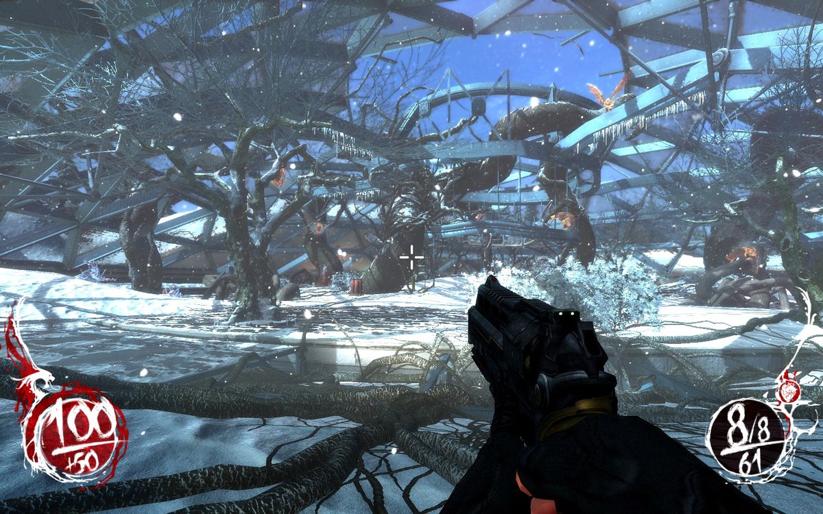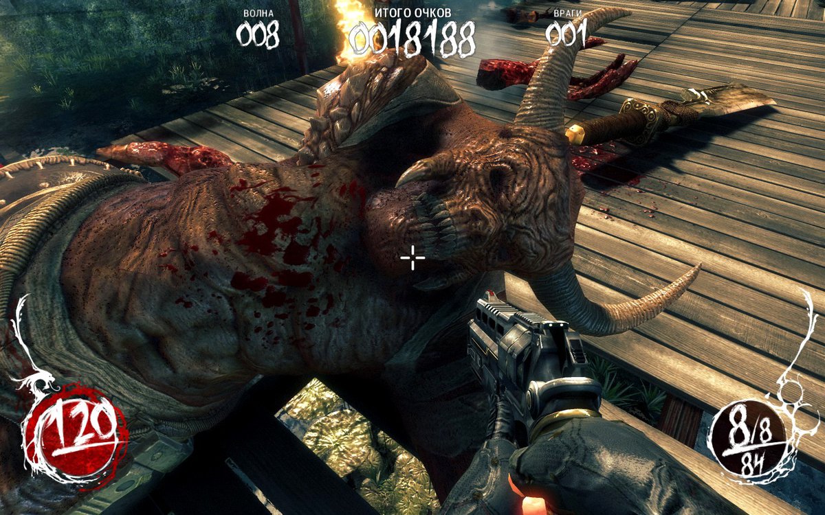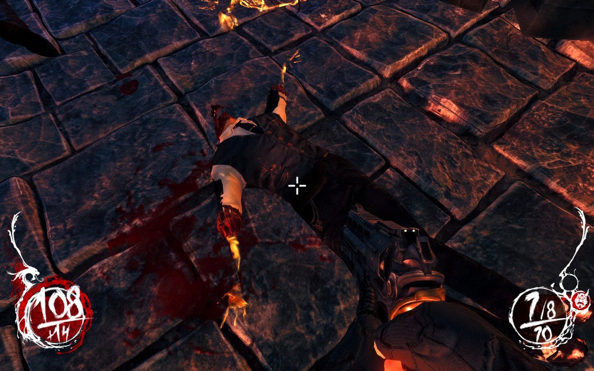 Хоть и стрельба в игре создана довольно криво, это не означает, что играть отвращёно и до боли невозможно. Вовсе нет! Благодаря тому, что жанр у нее я бы приписал к олдскулу, игра не дает вам заскучать. Поверьте, когда на Вас будет бежать толпа разъяренных демонов, пытающихся сожрать, как это и сделали с другими людьми, Вы не будете думать о том, а почему же я не попал в голову. В такой заварухе важнее всего будет просто стрелять куда попало, лишь бы как можно больше всадить пуль в проклятых чертей.