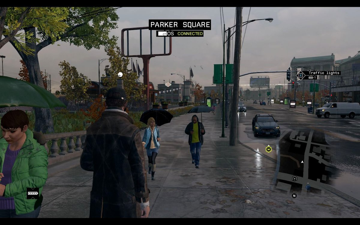 Сюжет в "Псах"-слабейшее звено, хотя для игры такого уровня, смертеподобно клепать абсолютно пресную историю. Ну окей, вот ты крутецкий хакер, вот твой член семьи погиб, вот ты начинаешь мстить за него... Но зачем склоняться в сторону ровно противоположную той, которая была бы намного доступнее и ярче? Главный герой на серьезных щах вступает в противостояние с афроамериканцем, служившем в Ираке, но одевающимся как недоэмохипстергей? Don`t kidding me.
